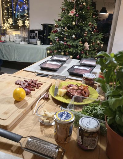 🍕 Poczęstunek: Panuozzo ze świeżymi dodatkami – zaczniemy od małej przekąski! Nauczysz się robić popularną w Neapolu włoską kanapkę “Panuozzo”. Przygotujemy też talerz wędlin, serów, oliwek i grillowanych warzyw.